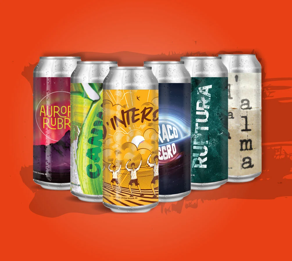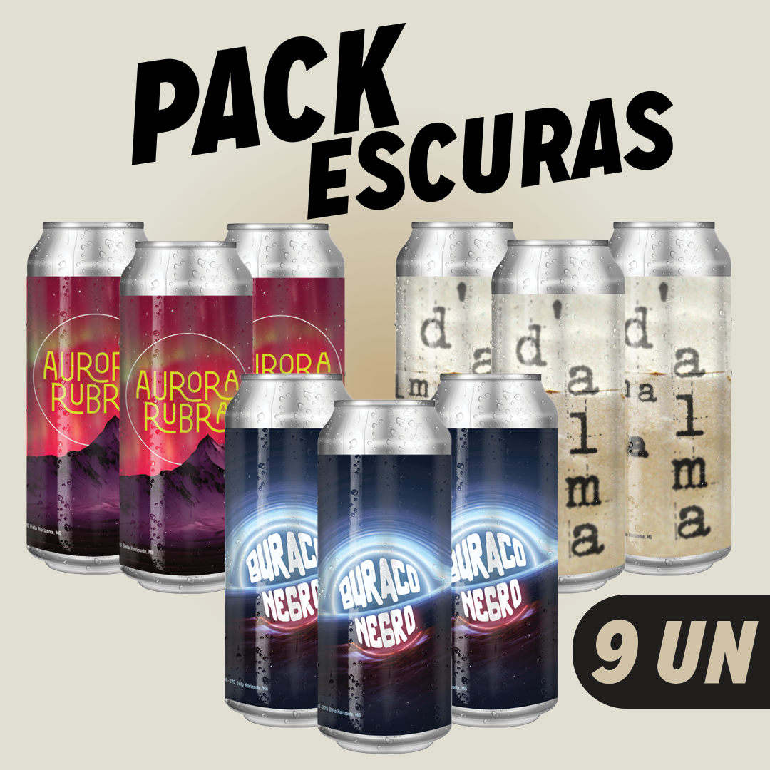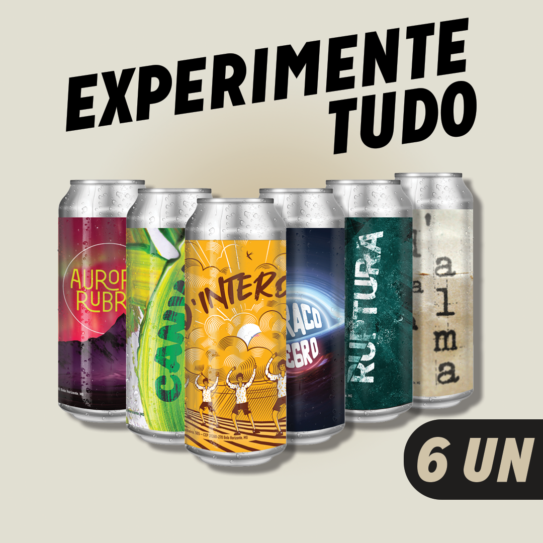 D’Intero American Lager (1un) | Canvas Hop Lager (1un) | Aurora Rubra Munich Dunkel (1un) | Ruptura American IPA (1un) | Buraco Negro Oatmeal Stout (1un) | D’Alma Dark Strong Ale (1un)